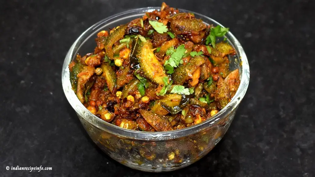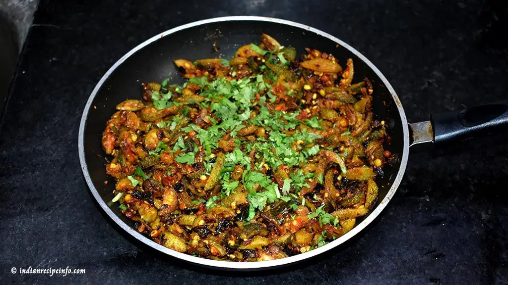 Less Oily Version: If you like less oil, you can cut down on the oil. The gourd will not be as crisp, but it will be tasty and flavorful. You can also cover the pan for some time when the gourd is being cooked so that the gourd gets steamed a bit and the cooking time becomes shorter.