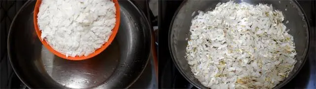 2. In leftover ghee add flattened rice and roast till they turn slight color and become crisp.