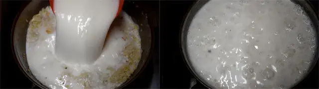 3. Add approximately 1-liter milk and bring it to boil so that flattened rice becomes soft.