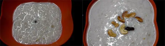 Cool Complete: Allow the payasam to cool to room temperature before refrigerating it. Refrigerating a warm payasam will make it release its moisture, and when it is refrigerated, that moisture becomes water, resulting in a watery kheer.