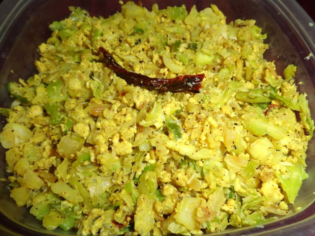 - Once all the above ingredients get fried, add this to cabbage coconut mixture.