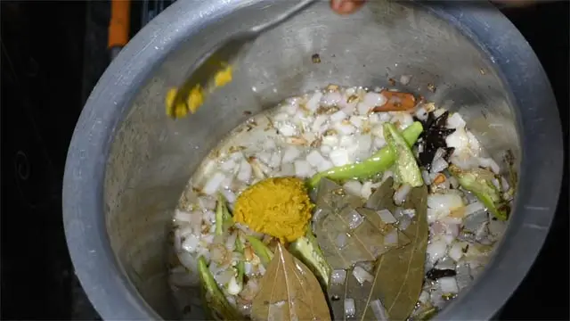 3.  Add star anise, bay leaf and cumin seeds. Saute for a second.
