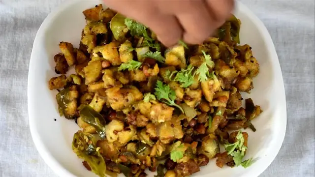 • Garnish Aratikaya Fry with coriander leaves and serve hot.