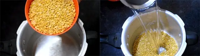 1.   In a pressure cooker add yellow lentil and clean it by adding adequate water.