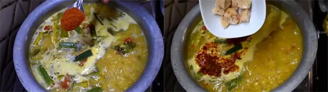 10. Check drumsticks, if they are cooked then add tamarind pulp and dal paste.