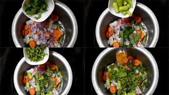 • When you have small onions with you, it’s a good idea to add them. If not add small pieces of onions.