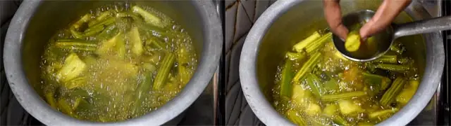 18. When curry leaves are added, oil tends to splutter. Take care while adding them.